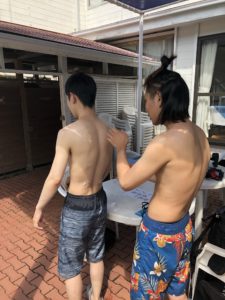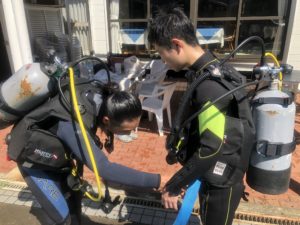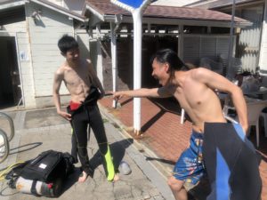 2021年夏!オープンウォーターダイバーコース 2021.08.05 実習 Tweet Share Hatena Pocket RSS feedly Pin it この記事のタイトルとURLをコピーする 2021年 “夏”オープンウォーターダイバーコース開催! 受講生はAki様・Ran様の2名様。 講習地は慣れ親しんだ西伊豆浮島サンセットビーチ天候に恵まれて講習なのに夏を満喫~♪ まずは日焼け止めから。メンズ同士で背中を塗り合っていますが、それもご愛嬌~(〃艸〃)ムフッ伊豆の日差しは暑さより痛さを感じます。ダイビングでの日焼けは大敵!しっかりと対策も必要です。 お店の移転に伴い、レギュ一式とBCDを新調しました!今回が初おろしでーす! 器材セッティングも順調ですね。 ん?Ranちゃん?ウェットスーツ、前後逆ですゾ!wコレってダイビングあるあるです。私も過去に同じ経験が・・・(;^_^A バディシステムもバッチリ! ~B・W・R・A・F~ うんうん!ちゃんと覚えてきましたね。 ん?Akiちゃん?ソレは何をチェックしてるのかな?w 海を見ながら露天風呂で海水を流しさっぱりしたところで、海洋実習1日目の最後のイベント!(謎)知識の復習ですゾ。ニヤニヤもうね、おふたりともしっかりと勉強してきていて、何の問題もございませんでした!ささ、夕飯にいくよ~~~! 夕食は宿近くの割烹へ。1日頑張った乾杯はAkiちゃん、生ビールRanちゃん、ハイボールそして、わたしくは・・・ お水!(運転手は宿に戻るまでお預け^^;)ここの料理はいつ来てもホントうんまい♪ 宿に戻って宴会タァ~イム!もほどもどに、翌日に備えてしっかりと睡眠をとって初日の疲れを取りましょう! 今回も、楽しくのんびりと講習を進めることができました。また、おふたりともダイビングセンスがよくて、すべてがスムーズでした~☆ おめでとうございます!オープンウォーターダイバー認定です!! よく頑張りました!おふたりともダイバーの仲間入りです。 次は9月のアドバンスコースですね。アドバンスコースは「遊び方」がメインです。ボート、ディープ、水中ライトをもってナイトダイビングなどなど楽しいイベント目白押しのコースです☆次回を楽しみにしております! ブループラスでは、おひとり様でも安心してお気軽にご受講いただけます。昨年は高校生がおひとりでご受講されました! 興味はあるけど、不安なことも・・・ 予算のこと、日程のこと、水中のこと・・・不安に思うことは何でも聞いてくださいね。いつでもお待ちしております。お気軽にお問合せくださいませ~♪ ※只今、新事業部の準備の為不在になる事もございます。ご来店をご希望の方ご一報いただければ幸いです。 ☆ ★ 新住所 ★ ☆〒390-0851松本市島内4579-11 ←ココをポチッと TEL:0263-31-6294JR大糸線 島内駅から徒歩約39秒 Tweet Share Hatena Pocket RSS feedly Pin it この記事のタイトルとURLをコピーする 伊豆海洋実習 前の記事 2024年!ライセンス取得キャンペーン 次の記事